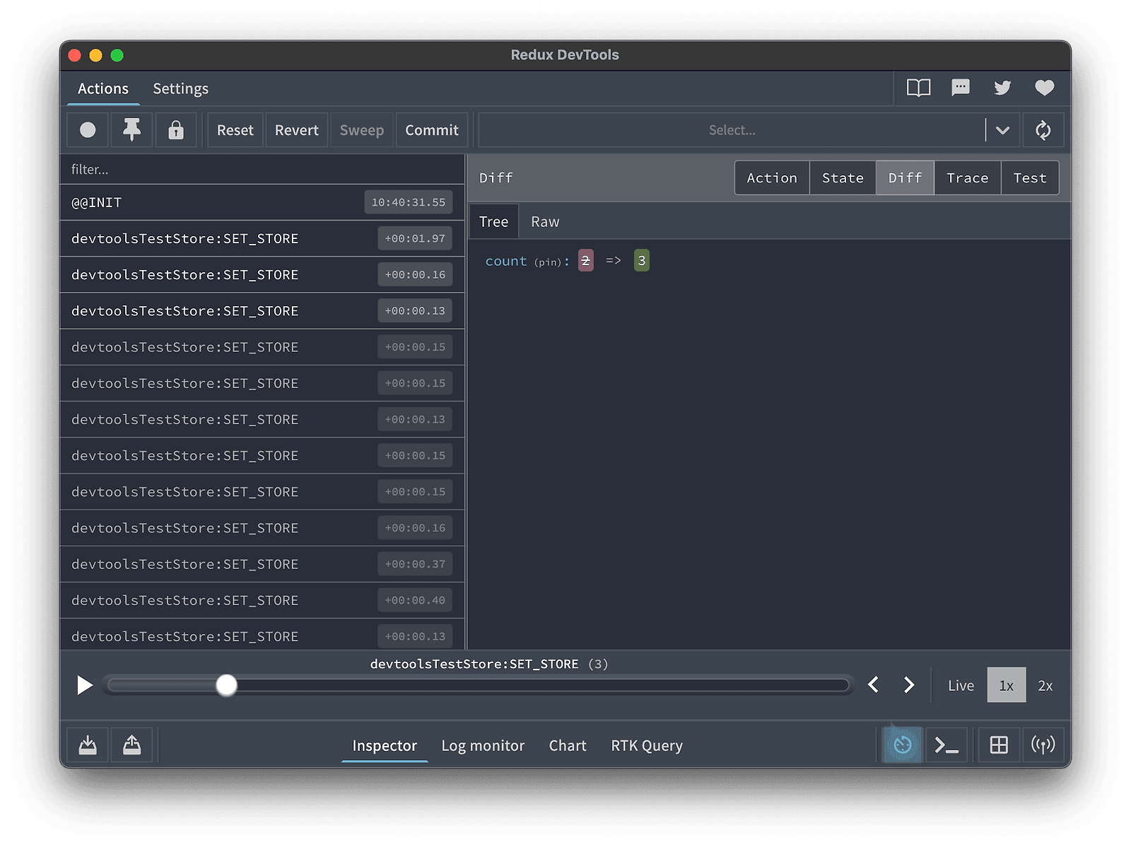 예를 들어, devtools 미들웨어를 사용하여 count 상태를 관리하는 예시는 다음과 같이 실시간으로 상태 변화를 관찰하고, 버튼 클릭 시 상태를 증가시키거나 감소시킬 때마다 Redux DevTools에서 변화가 기록되는 모습을 확인할 수 있습니다. 이 방식은 특히 복잡한 상태 관리 및 디버깅을 단순화하고, 개발자의 작업 효율성을 크게 향상시킵니다.